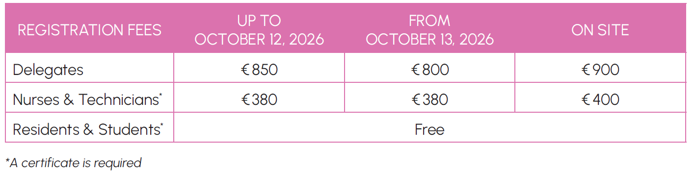 An access to the scientific sessions and the exhibition, congress documents, lunches and coffee breaks. The closing date for individual registration is on November 13, 2026.